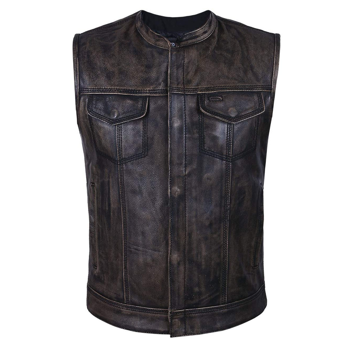 - Antique Verona leather exterior torso and chest patch pocket body